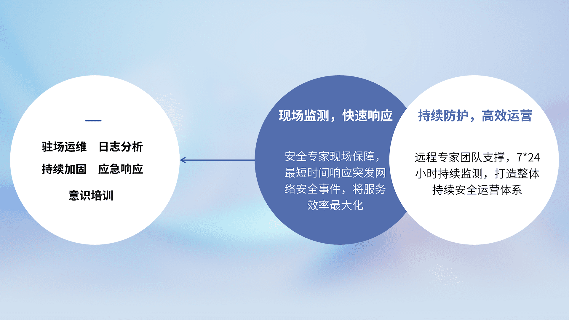 针对客户行业特性,,,提供专属的一站式安全管理服务,,帮助客户全面感知网络空间威胁,,,通过安全专家的线上、、线下防护支持,,,实现风险闭环,,,将安全保障常态化,,,,为客户打造常态化安全运维运营服务。。